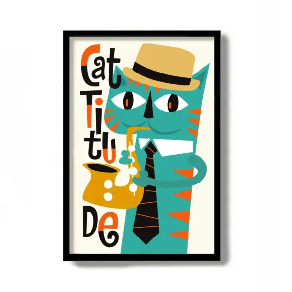 Jazz Poster Mid Century Wall Art Black Cat Print Funny Cat Art Cat Lover Gift Idea Music Lover Gift Hipster Print Wall Art