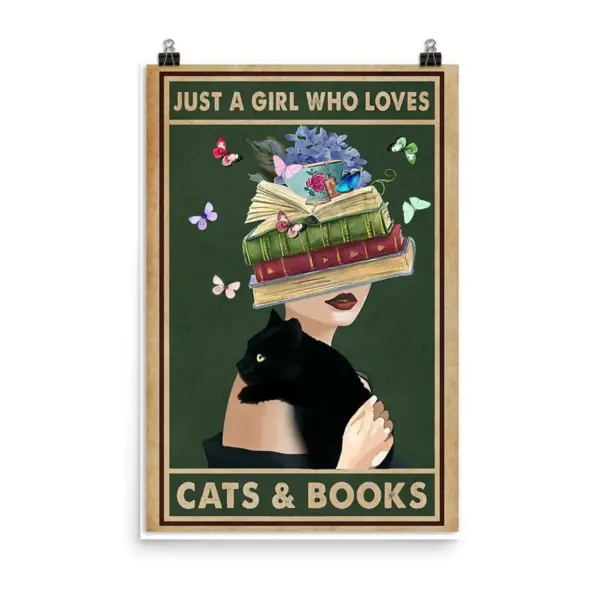 Just A Girl Love Cats Books Poster Love Cat Gift Poster No Frame