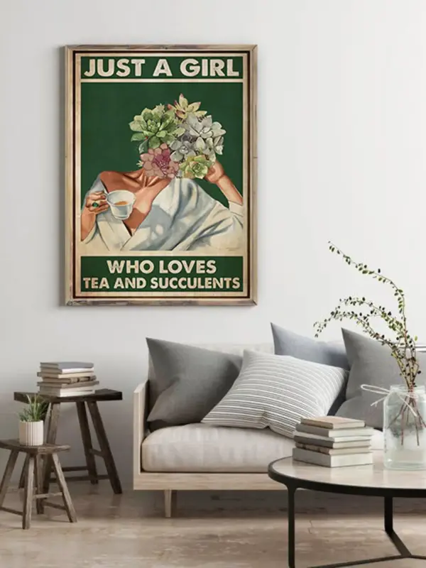 Just A Girl Loves Tea Poster Tea Cup Art Drinking Poster Best Gift Ever Home Decor Sign For Home Wall Decoration Pot Head