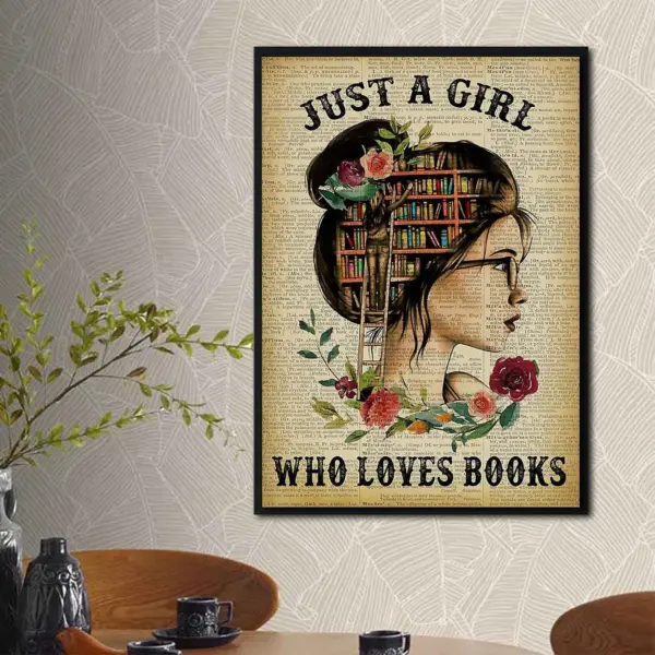 Just A Girl Who Love Book Poster Bookish Gifts Book Lovers Poster Reading Girl Reading Wall Art Love Reading Poster Bookworm Gifts