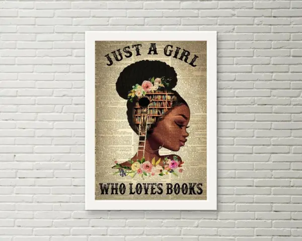 Just A Girl Who Loves Book Poster Book Poster Print Book Wall Decor Black Girl Loves Book Feminist Poster Afro Girl Print Art Book Page