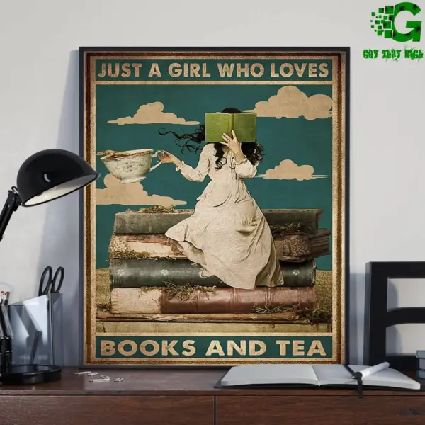 Just A Girl Who Loves Books And Tea Poster Tea Lovers Book Lovers Wall Art Living Home Decor Wall Decor Best Gift Ever