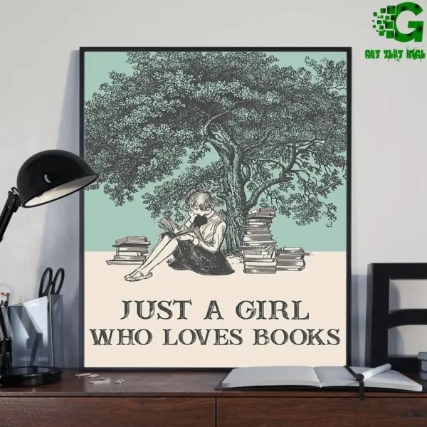 Just A Girl Who Loves Books Poster Books Lovers Wall Art Living Home Decor Wall Decor Best Gift Ever