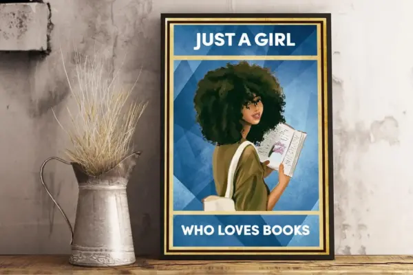 Just A Girl Who Loves Books Poster Girl Reading Book Poster Love Reading Book Canvas Afro Girl Portrait Book Lovers Gift Book Lover Art