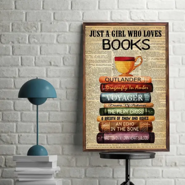 Just A Girl Who Loves Books Poster Love Diana Gabaldon Book Canvas Vintage Book Print Girl Reading Book Poster Book Lovers Gift Art