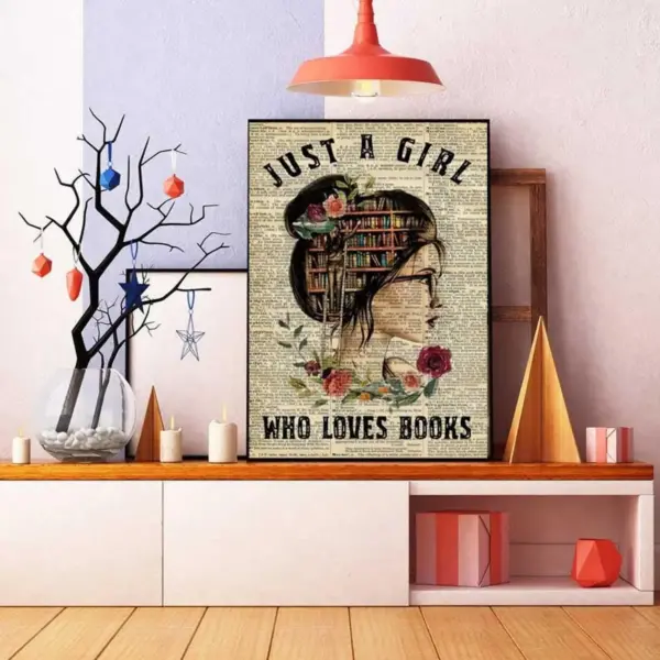 Just A Girl Who Loves Books Poster Love Reading Book Canvas Vintage Book Art Print Girl Reading Book Poster Book Lovers Gift Art
