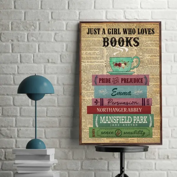 Just A Girl Who Loves Books Poster Love Reading Book Canvas Vintage Book Tea Print Girl Reading Book Poster Book Lovers Gift Art