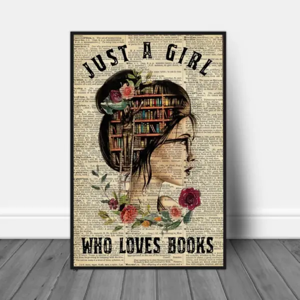 Just A Girl Who Loves Books Poster Love Reading Book Poster Vintage Book Poster Vintage Girl Book Poster Book Poster Bookworm Gift