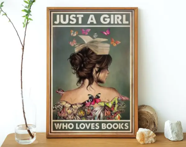 Just A Girl Who Loves Books Poster Love Reading Love Book Print Butterfly Poster Book Lover Gifts Vintage Vertical Poster No Framed
