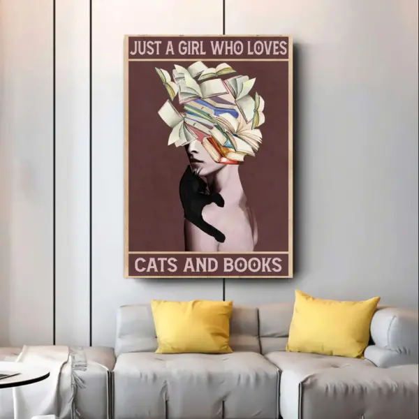 Just A Girl Who Loves Cats And Books Poster Cats And Books Canvas Vintage Art Print Cats Lovers Poster Book Lovers Gift Art