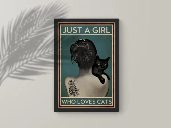 Just A Girl Who Loves Cats Poster Black Cat Print Cat Print Cat Lover Gift Black Cat Art Cat Art Cat Wall Art Black Cat Wall Decor