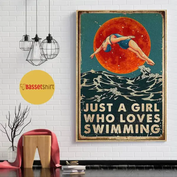 Just A Girl Who Loves Swimming Vintage Sunset Poster
