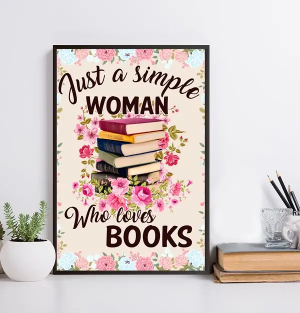 Just A Simple Woman Who Loves Books Poster Love Book Poster Book Lover Love Reading Poster Reading Book Poster Art Wall Decor 2107