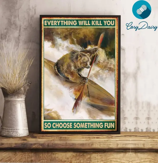 Kayaking Poster Kayaking Bear Wall Art Home Decor Poster Print