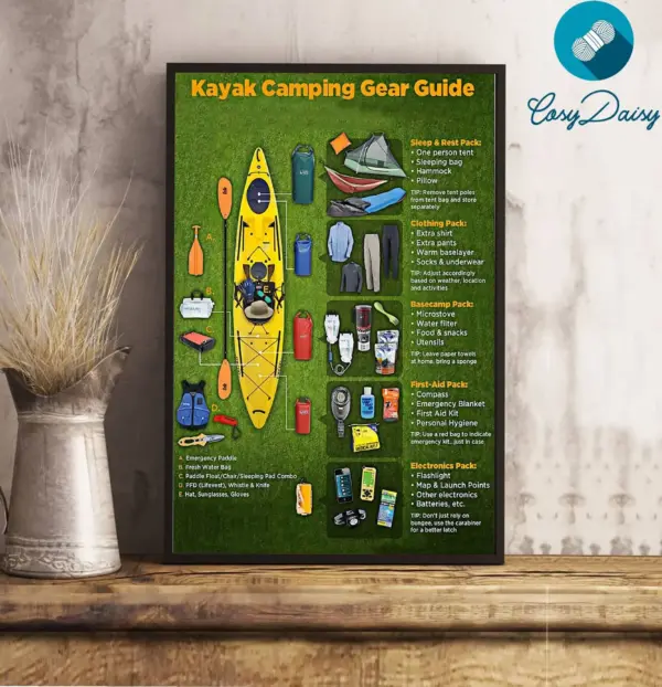 Kayaking Poster Kayaking Kayak Camping Gear Guide Wall Art Home Decor Poster Print
