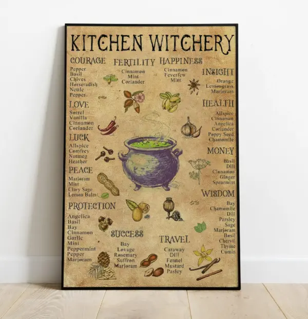 Kitchen Witchery Poster Witches Magic Knowledge Poster Witches Poster Magic Lovers Gift Kitchen Blessing Incense Art Vintage Poster Jh 2282 Framed Matte Canvas