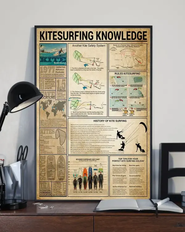Kitesurfing Knowledge Poster Vintage Wall Art Gift For Kitesurfer