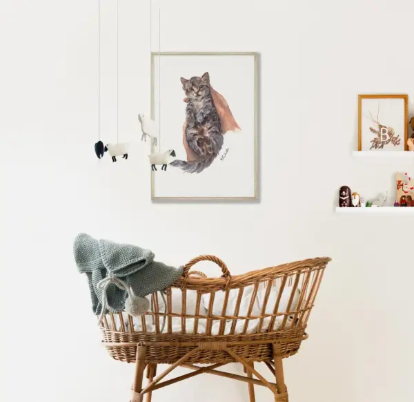 Kitten In Hand Wall Poster Cute Kitten Print Instant Nursery Art Watercolor Cat Wall Print Cat Lover Gift