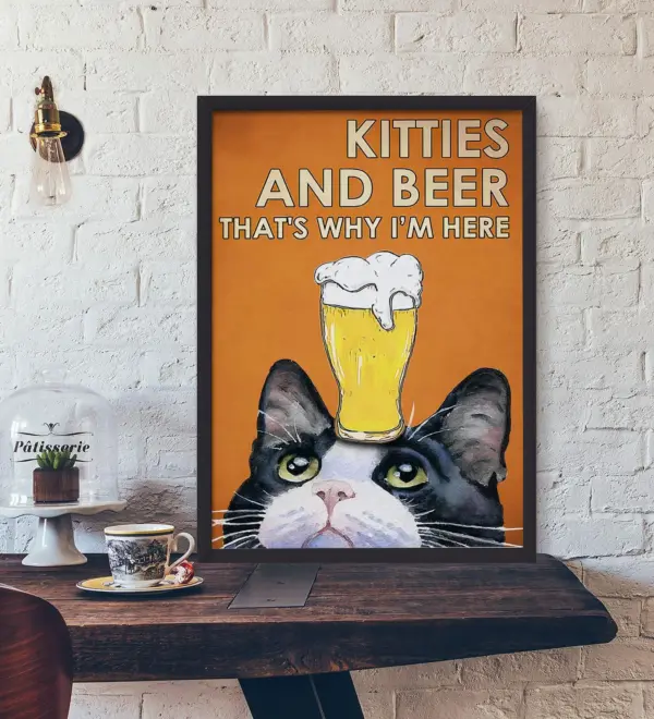 Kitties And Beer Poster Love Cat Poster Love Beer Poster Cat Drinking Beer Canvas Print Alcoholic Poster Gift For Cat Lover Home Decor