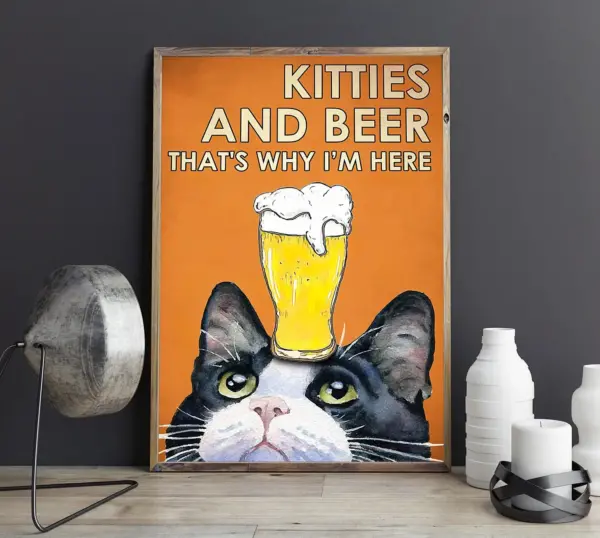 Kitties And Beer That S Why I M Here Poster Cat Poster Retro Cat Print Cat Room Decor Beer Lover Cat Lover Art Cat Drinking Beer Art