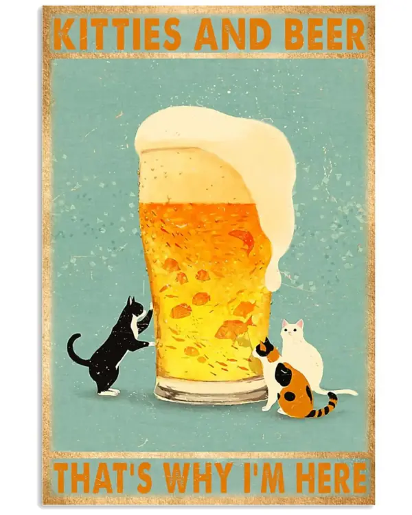 Kitties And Beer That S Why I M Here Vertical Poster Funny Cat Baking Art Cat Lover Gift