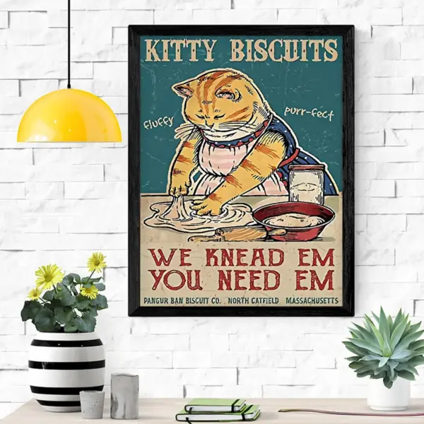 Kitty Biscuits We Knead Em You Need Em Poster Black Cat Poster Cat Vintage Poster Cat Lover Gift