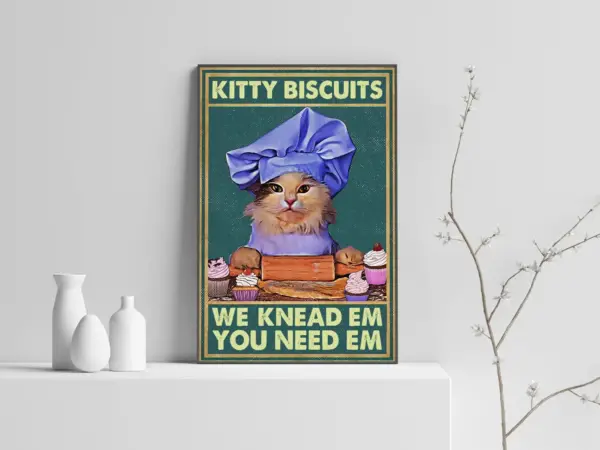 Kitty Biscuits We Knead Em You Need Em Poster Black Cat Print Bakery Poster Kitty Biscuits Poster Funny Kitty Signs For Home