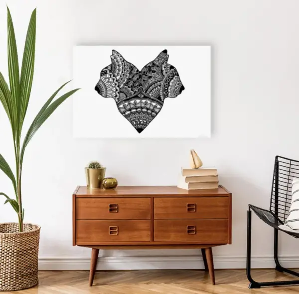 Kittylove Poster Framed Wall Decoration Cat Art Cat Loveheart Heart Cat Illustration By Mandalove