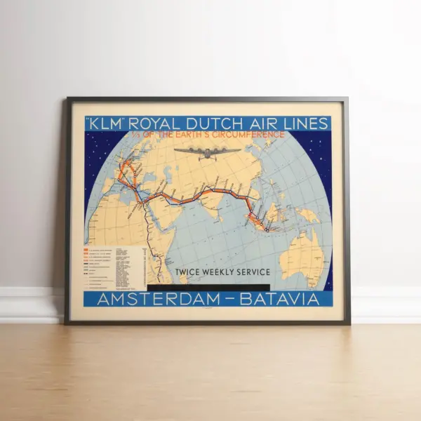 Klm Airlines Poster Royal Dutch Airlines Vintage Travel Print Amsterdam To Batavia Aviation Travel Vintage Aviation Wall Art