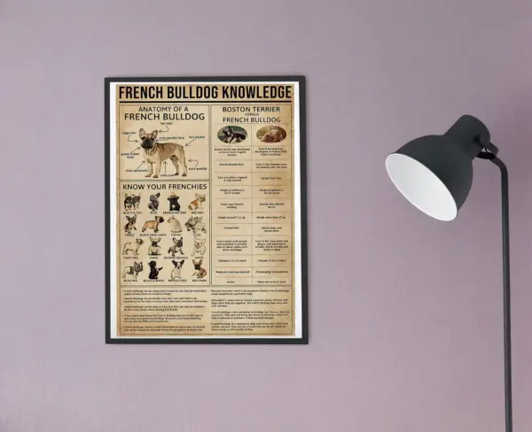 Knowledge French Bulldog Poster Framed Matte Canvas