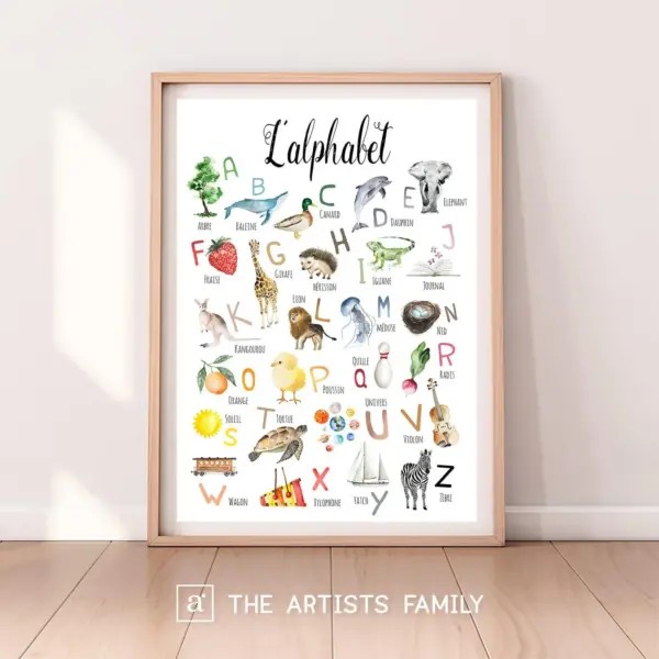 L Alphabet Francais Educative French Downloadable Prints Watercolor Montessori Posters For Kids Children Rooms Learning Letters Abc