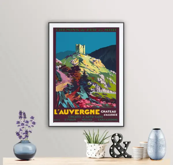 L Auvergne Chateau D Alleuze Vintage Travel Poster Poster Paper Sticker Or Canvas Print Gift Idea