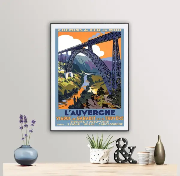 L Auvergne Viaduc De Garabit Sur La Truyere Vintage Travel Poster Poster Paper Sticker Or Canvas Print Gift Idea