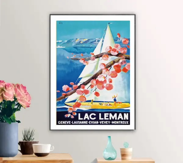 Lac Leman Suisse Vintage Travel Poster Poster Paper Sticker Or Canvas Print Gift Idea