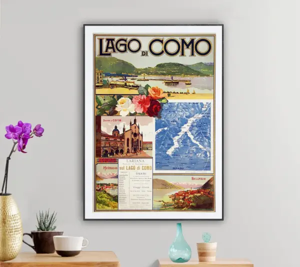 Lago Di Como Italy Vintage Travel Poster Poster Paper Sticker Or Canvas Print Gift Idea Wall Art