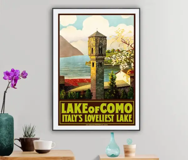 Lake Of Como Italy S Loveliest Lake Vintage Travel Poster Poster Paper Sticker Or Canvas Print Gift Idea Wall Art