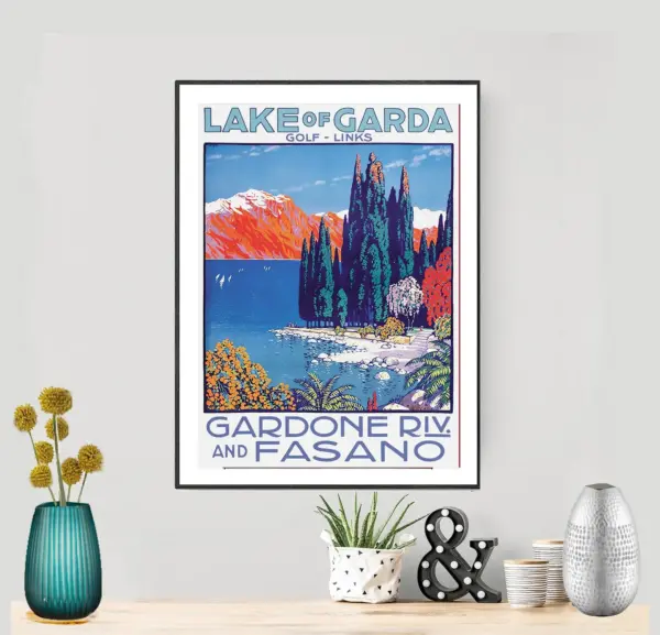 Lake Of Garda Gardone Riviera And Fasano Italy Vintage Travel Poster Poster Paper Sticker Or Canvas Print Gift Idea