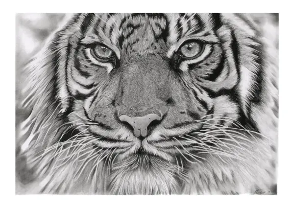 Large Mounted Tiger Art Print Hand Drawn Tiger Sketch Tiger Wall Art Wildlife Artwork Black And White Tiger