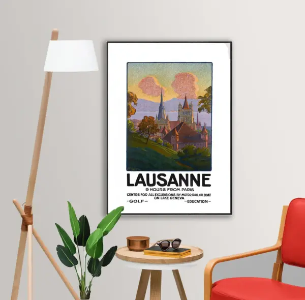 Lausanne Switzerland Vintage Travel Poster Poster Paper Sticker Or Canvas Print Gift Idea