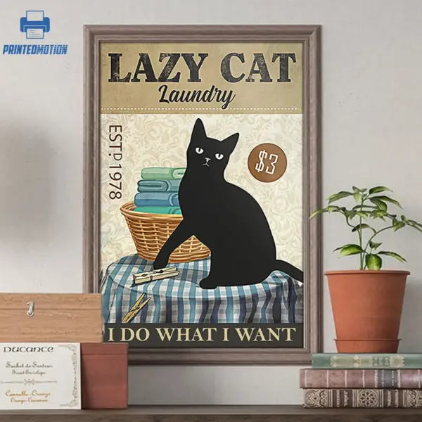 Lazy Black Cat Laundry Poster Canvas Animal Lover Laundry Room Art Print Bathroom Decor Poster Canvas Home Decor Dog