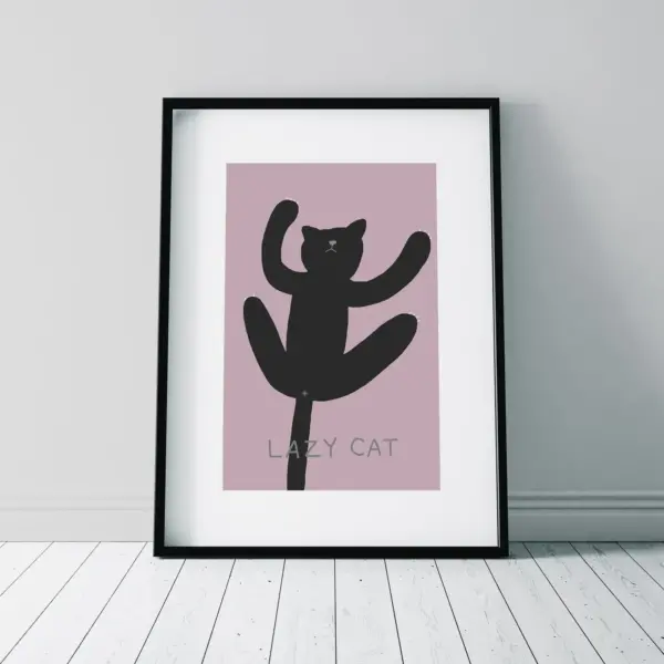Lazy Cat Black Cat Wall Art Cat Printable Art Cat Lover Gift Wall Decor Simple Wall Art