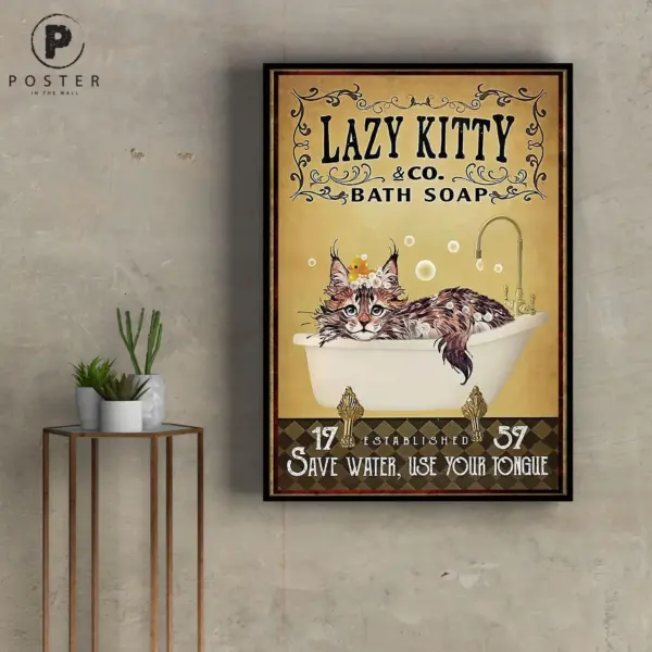 Lazy Kitty Wash Your Paws Poster Cat Poster Print Wall Art Cat Lover Gift Wall Decoration Bathroom Poster Hanging Poster Best Gift Ever