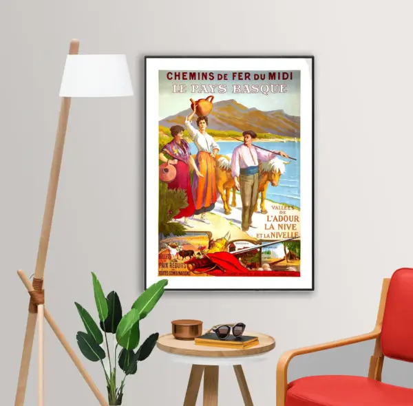 Le Pays Basque France Vintage Travel Poster Poster Paper Sticker Or Canvas Print Gift Idea
