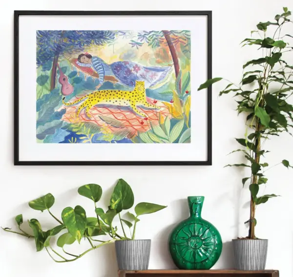 Leopard Lady Jungle Cat Art Print - Matisse Botanical Watercolor