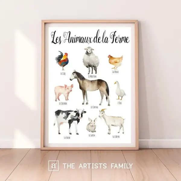 Les Animaux De La Ferme French Educative Downloadable Prints Watercolor Montessori Educational Posters Kids Boy Girls Children Room Learning