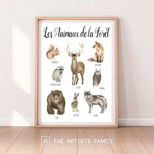 Les Animaux De La Foret French Educative Downloadable Prints Watercolor Montessori Educational Posters Kids Boy Girl Children Room Learning