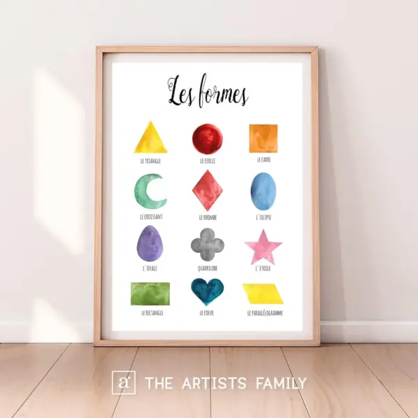Les Formes Francais Educative French Downloadable Prints Watercolor Montessori Posters For Kids Boy Girl Children Rooms Learning Preschool