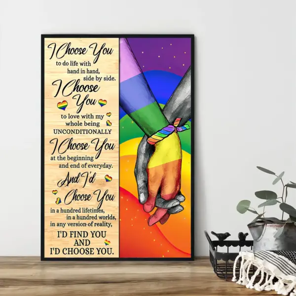 Lesbian Couple I Choose You To Do Life With Canvas Lgbt Poster Print Lgbt Hand And Hand Canvas Art Lgbt Pride Gay Couple Canvas Art
