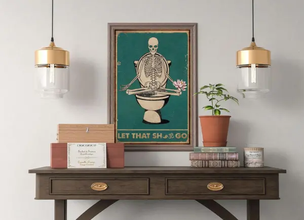 Let That Shit Go Funny Yoga Skeleton Poster Canvas Art Bathroom Wall Decor Yoga Wall Art Skeleton Poster Lotus Art Signs For Home