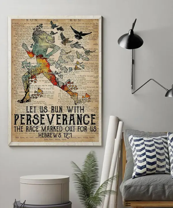 Let Us Run With Perseverance The Race Marked Out For Us Poster Running Girl Wall Art Running Lovers Art Print Running Canvas Print